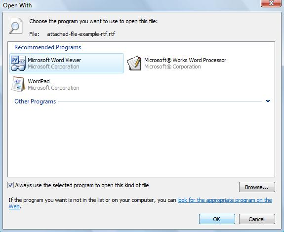 - 4) After installation set Word Viewer as the default program for opening RTF files (as per the method above).
