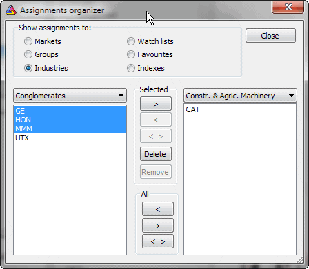 AmiBroker has the ability to assign symbols to different categories, allowing you (when properly set up) to narrow your analysis searches to symbols meeting certain selection criteria (thanks to the Filter feature available in Quick Review and Automatic Analysis windows). The initial setup of categories may be a little complicated, especially when you want to track several thousand symbols.