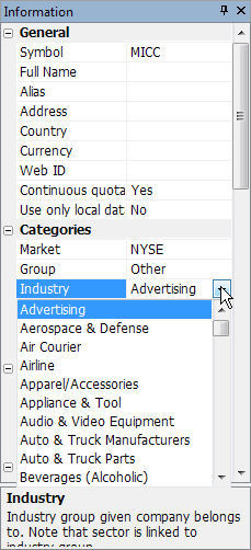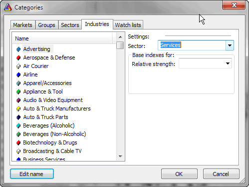 As described above, symbol and industry names and relationships can be easily set up quickly using "broker.sectors" and "broker.industries" files. It will save some work needed otherwise to enter this information in the Symbol->Categories window.
