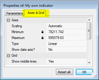 Also, in the "Axes & Grid" tab, you will be able to change settings for axes, grids, and other charting options referring to this particular chart: