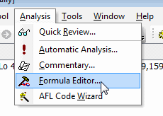 For further reference on using the Formula Editor, please consult the "Environment - Formula Editor" and "AmiBroker Formula Language - AFL Tools" sections of the AmiBroker User's guide and using the AFL editor.