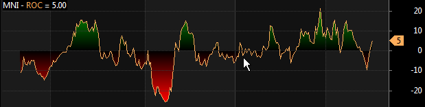 For example, to display a three-color gradient Rate of Change that will use green as the "top" color for positive values, the background color as the "baseline" color and red as the "bottom" color for negative values, it is enough to write: