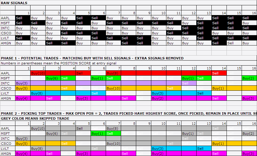 As you can see, short signals get interleaved between long signals even though their absolute values of scores are smaller than the corresponding scores of long signals. Also, there were only 2 short signals for that particular bar, so the rest of the list shows long signals in order of position score. Although this feature can be used independently, it is intended to be used in combination with the MaxOpenLong and MaxOpenShort options.