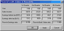 This window provides fundamental financial data of the corporation, such as:
